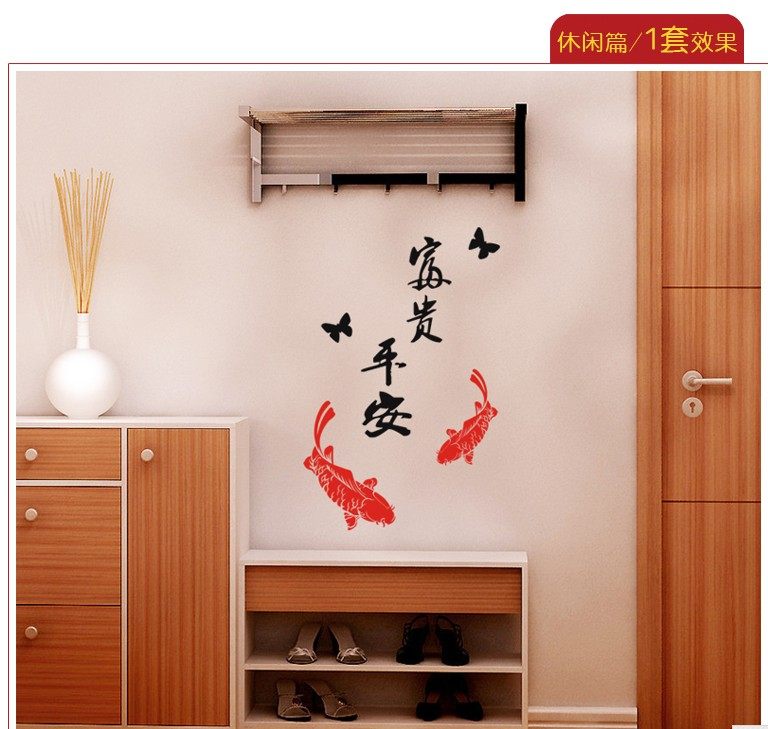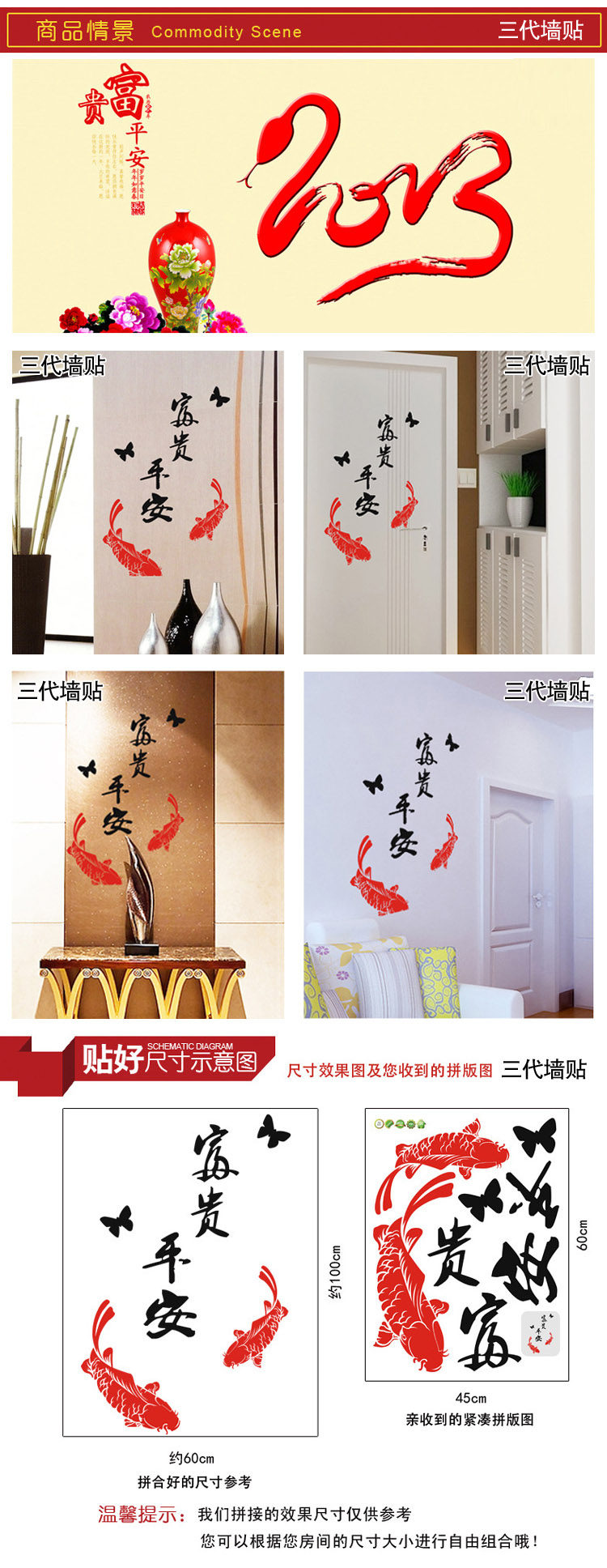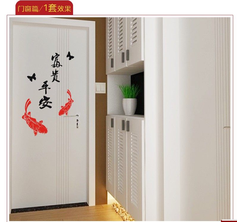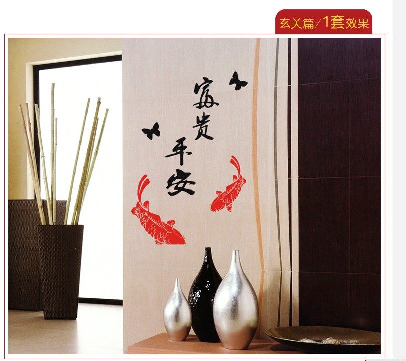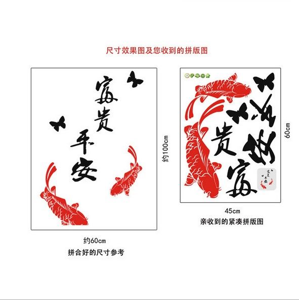 中國(guó)風(fēng)書法字畫吉祥如意魚墻貼客廳餐廳廚房櫥柜玻璃移門貼畫貼紙推廣熱賣行情