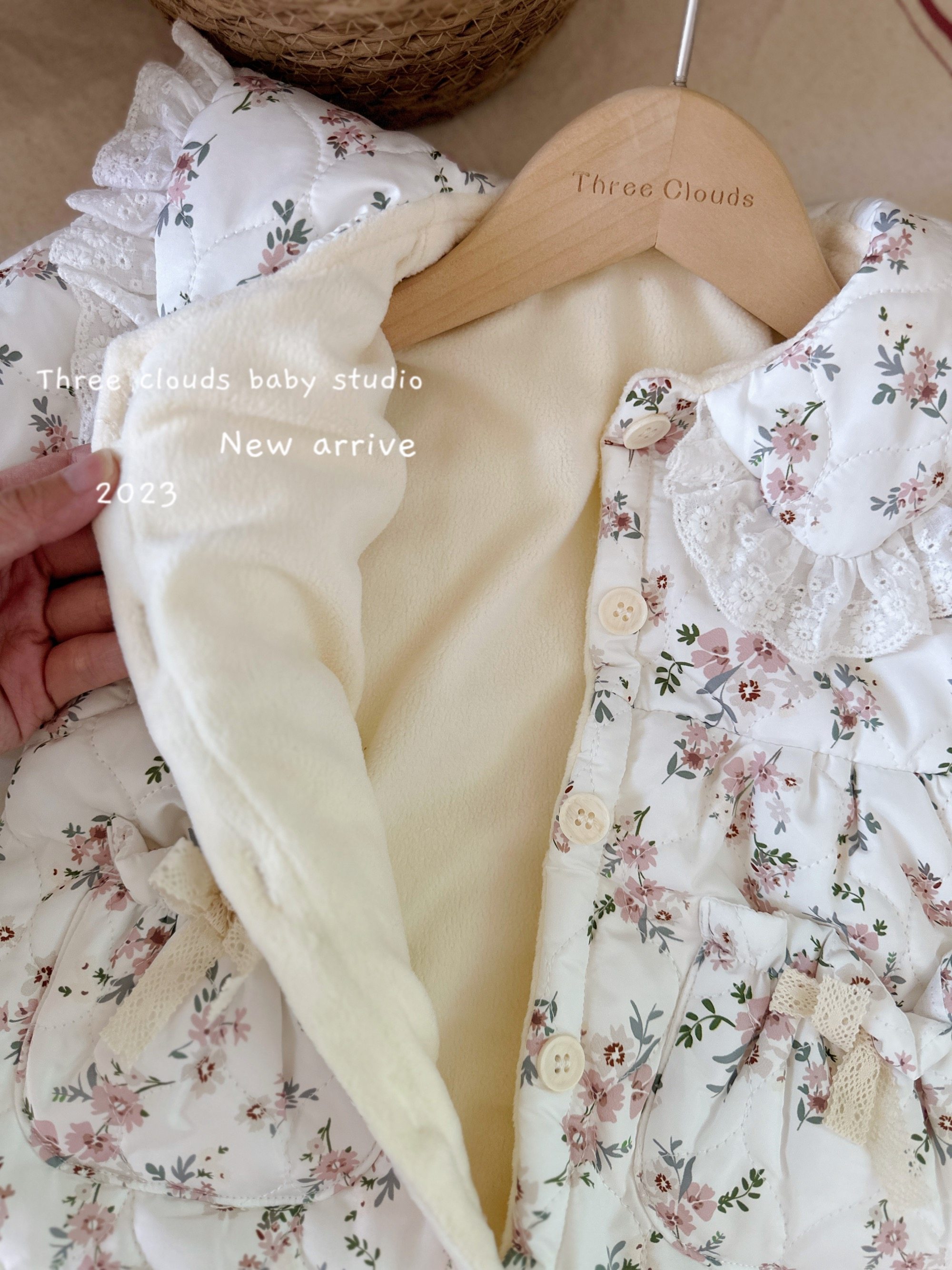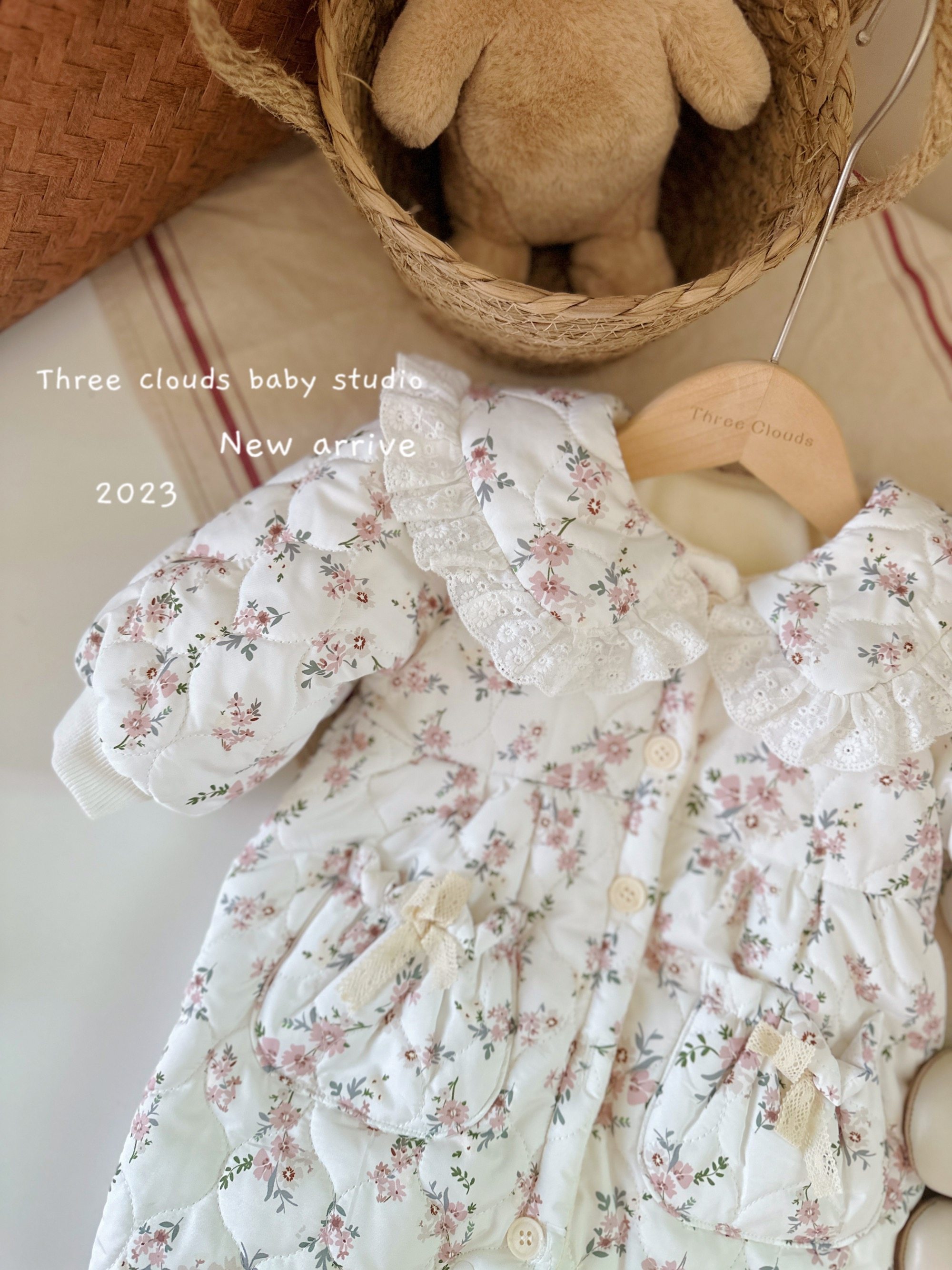三小朵網(wǎng)紅女寶寶冬季加厚爬服女童碎花長(zhǎng)袖哈衣保暖外出嬰兒夾棉