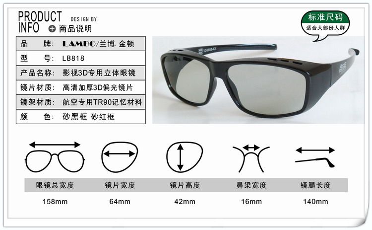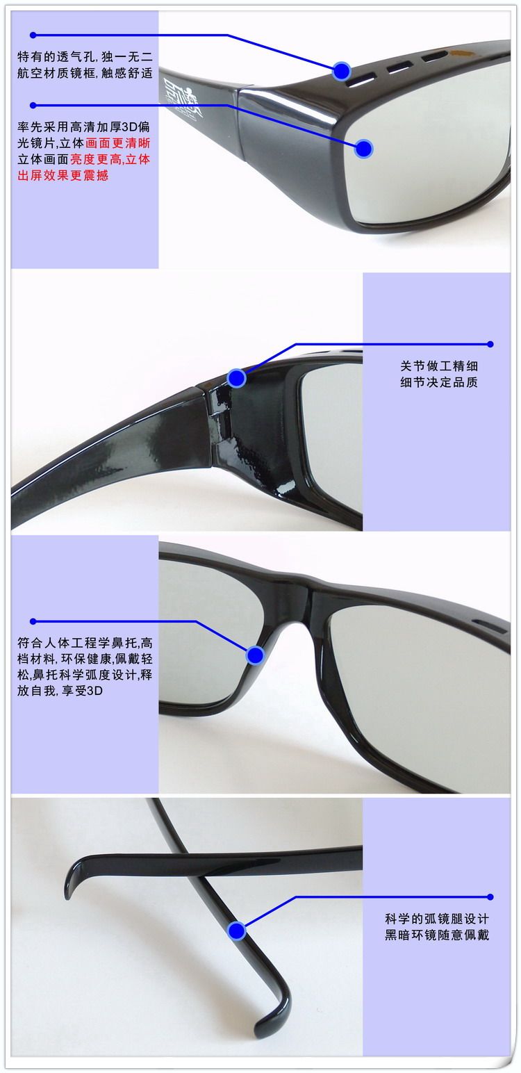 新一代不閃式圓偏光3D立體眼鏡電影院偏振3D電視電腦通用套鏡包郵