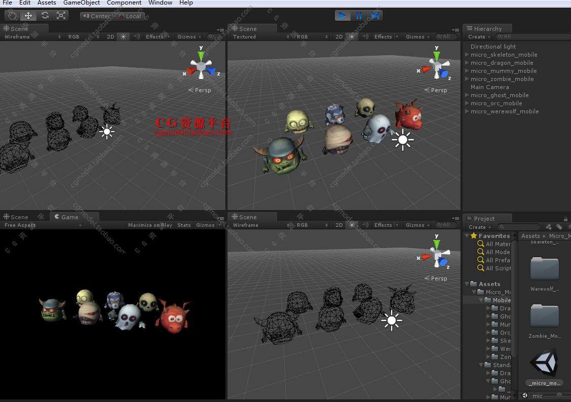 包含7個(gè)低多邊型怪物模型,每個(gè)模型都有15個(gè)動畫,并且包含移動版本的模型在里面(1-2drawcalls)