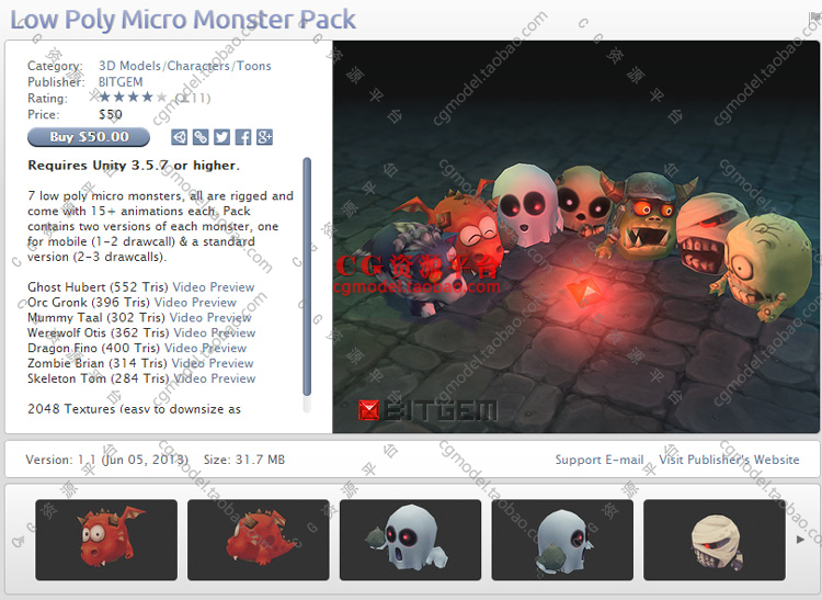 unity3d資源包動作 Low Poly Micro Monster PackQ版怪物模型動畫價(jià)格行情