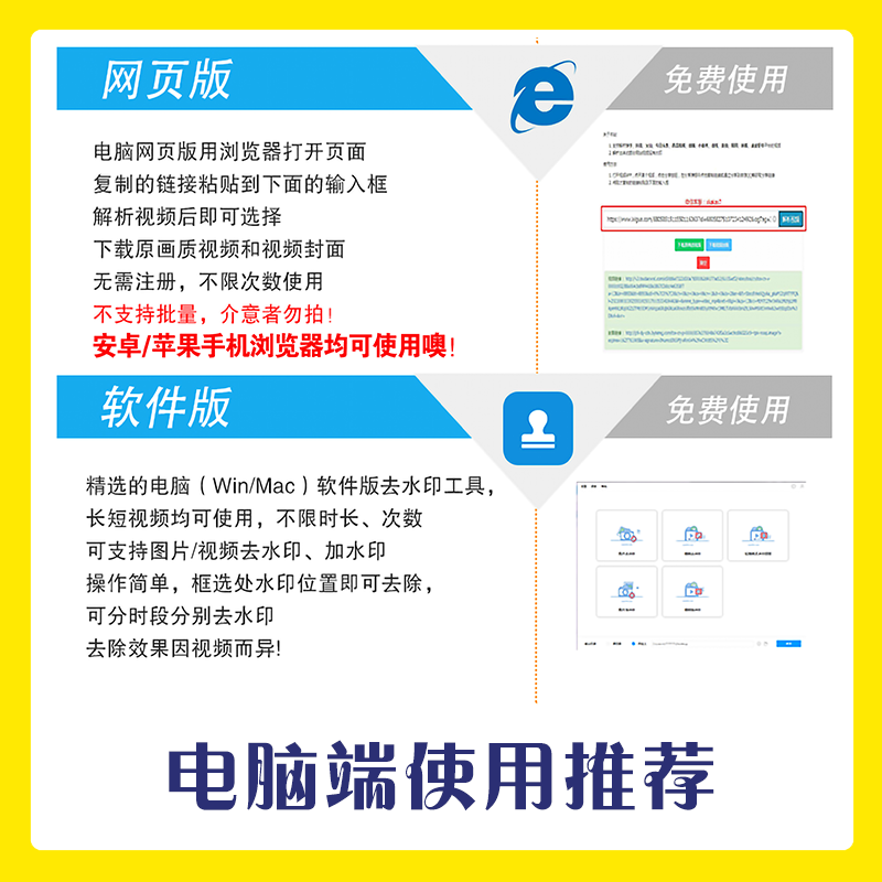 短視頻去水印自媒體素材高清下載蘋果安卓APP小程序網(wǎng)頁(yè)電腦軟件價(jià)格行情
