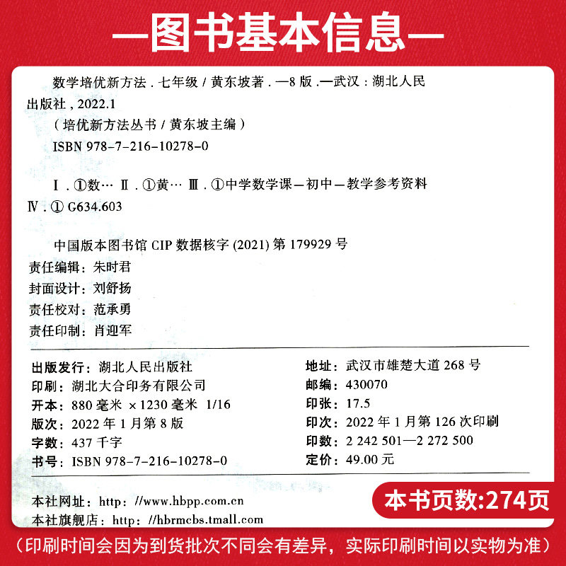 2022版數(shù)學培優(yōu)新方法七年級數(shù)學全國通用 初中數(shù)學培優(yōu)競賽奧數(shù)知識大全同步訓練中考思維拓展初一輔導資料書練習題黃東坡價格行情