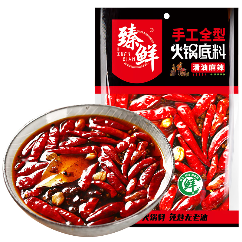 清油火鍋底料麻辣臻鮮手工全型火鍋料500g袋裝四川特產(chǎn)冒菜料包郵價(jià)格行情