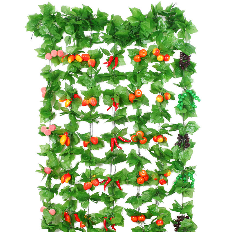 仿真水果藤條假花葡萄葉藤蔓吊頂裝飾塑料花藤綠葉樹(shù)葉子纏繞飯店推廣熱賣行情