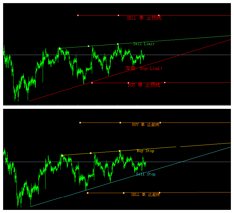 注意:bll / sll 趨勢線對應的下單量是 Lots 的兩倍。
