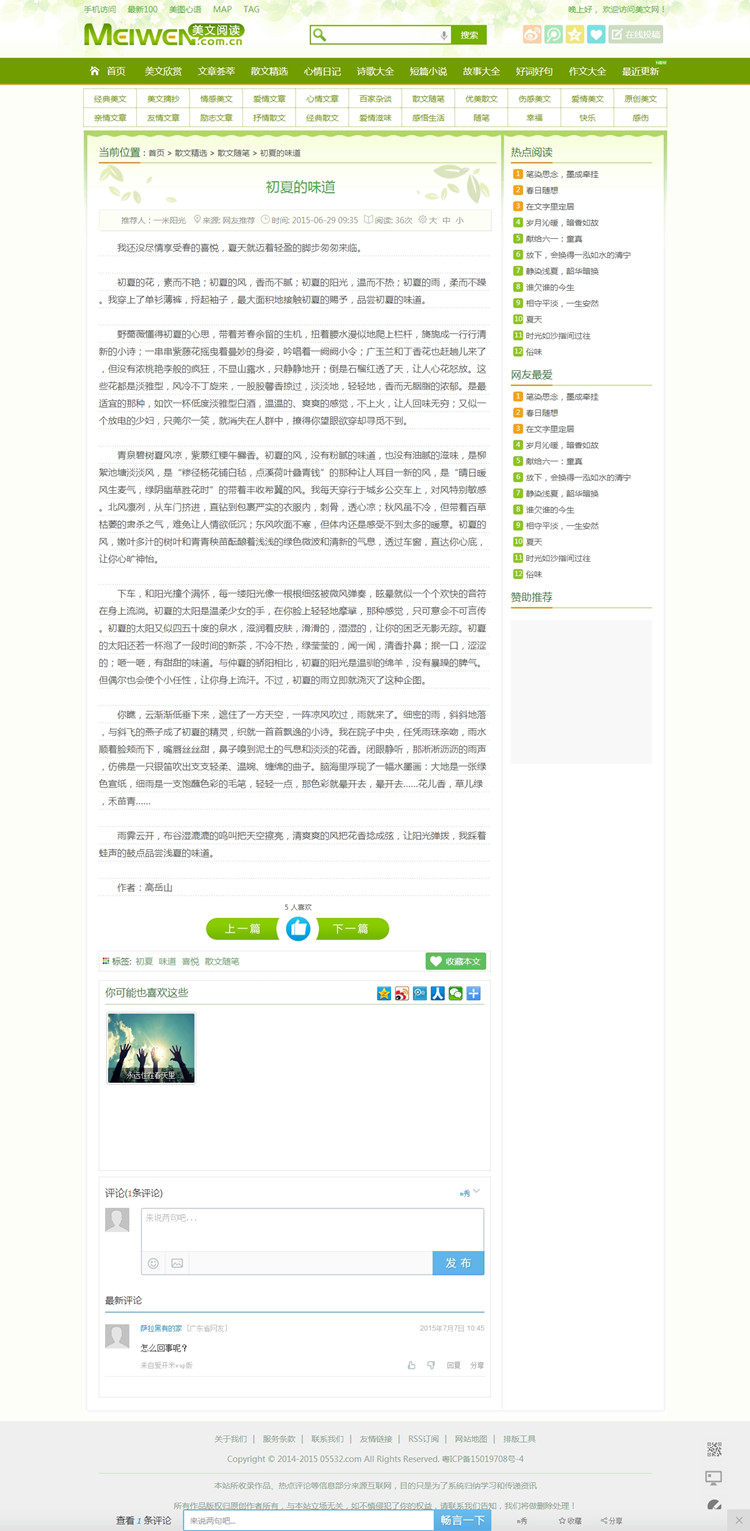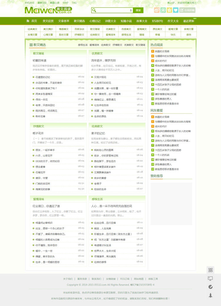 帝國CMS7.2仿美文網(wǎng)源碼,短文學(xué)網(wǎng)站模版 美文閱讀WAP模板 帶采集