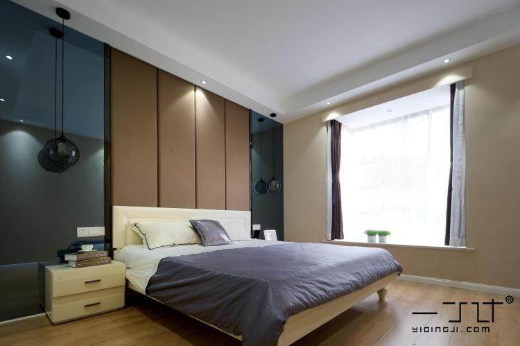 臥室用了簡(jiǎn)單的壁紙和現(xiàn)代鏡面做裝飾,整個(gè)空間簡(jiǎn)約而不缺調(diào)調(diào)!符合現(xiàn)代審美!