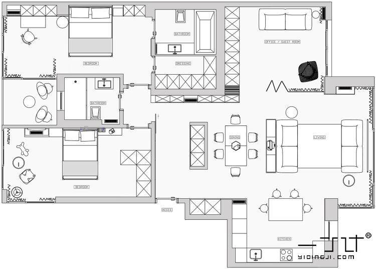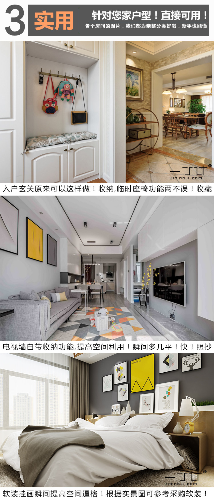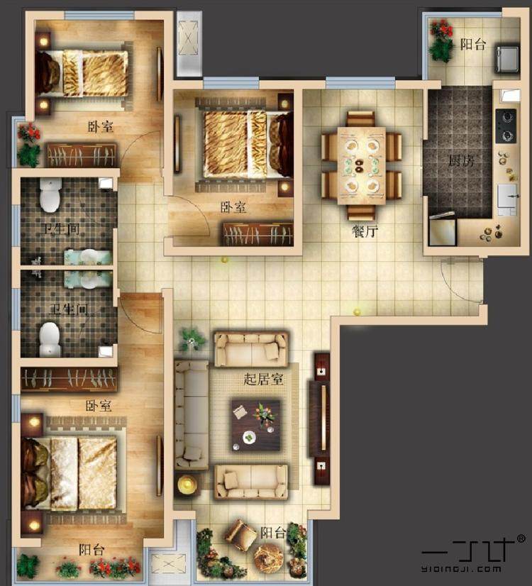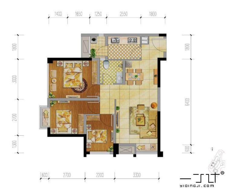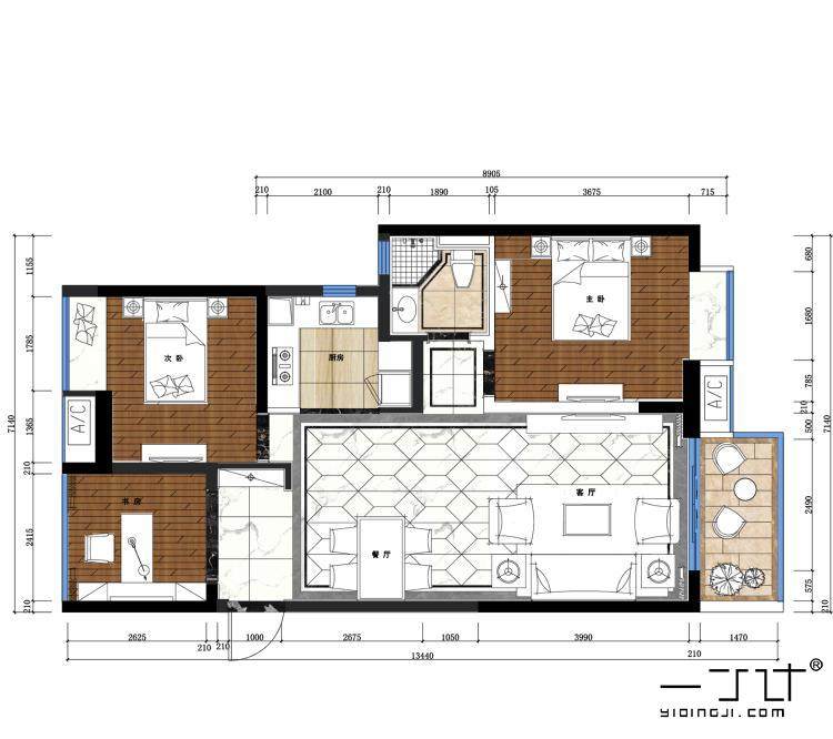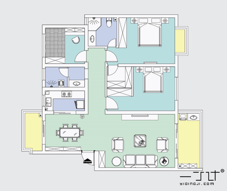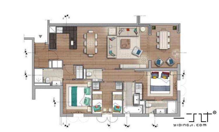 三居室裝修設(shè)計(jì)效果圖三室一廳兩家樓房屋內(nèi)客廳臥室北歐一丁素材