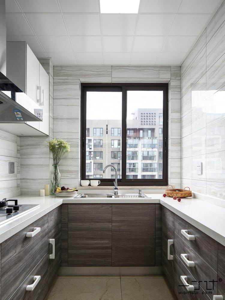 新中式的廚房可以用木紋色和白色來做基調(diào)色!這個(gè)廚房就很棒有木有?