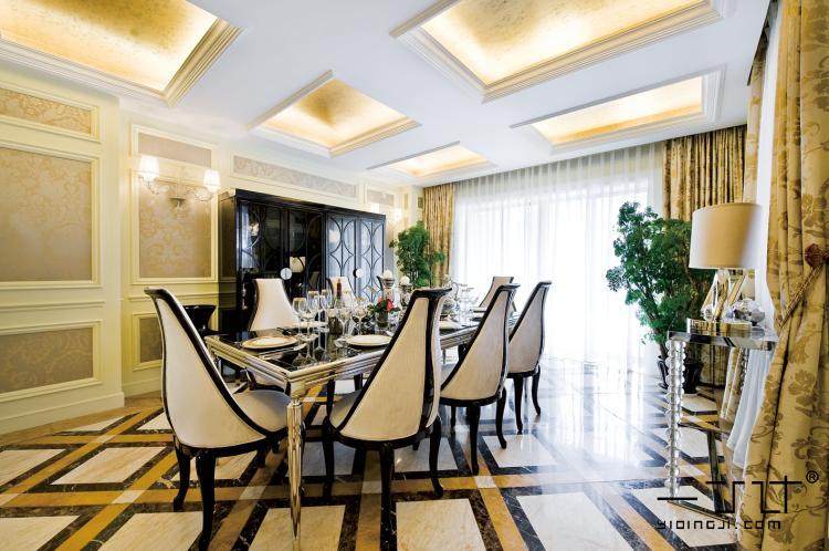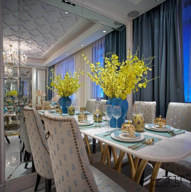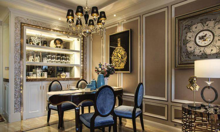 餐廳隨處可見簡歐線條和簡歐家具。軟裝搭配簡歐風(fēng)格后,整體表現(xiàn)非常棒。