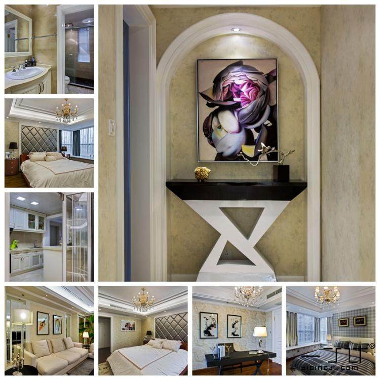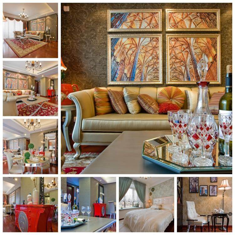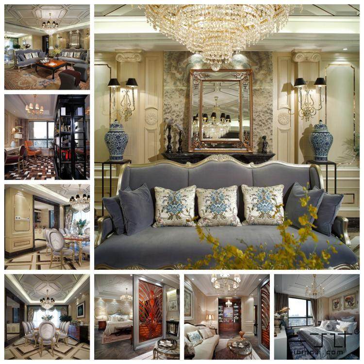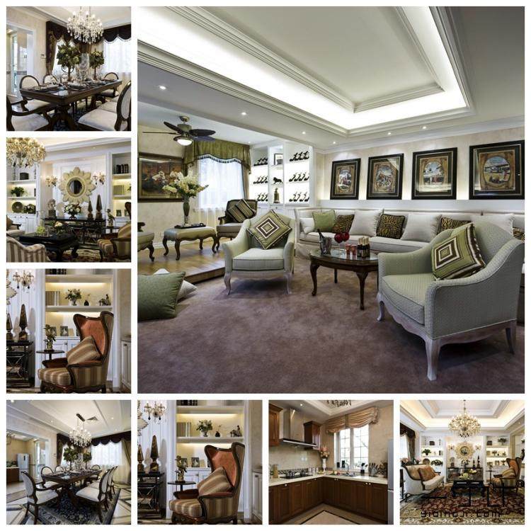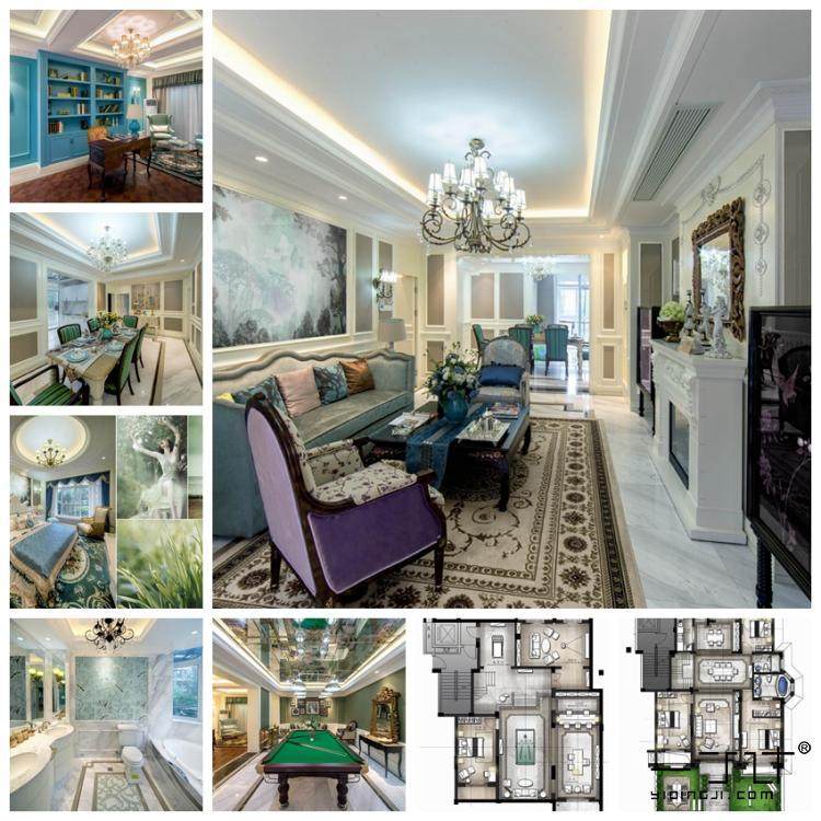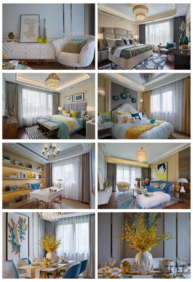 電視墻也用到了簡歐線腳,吊頂也是。簡歐風(fēng)格不拘泥于傳統(tǒng)歐式的線腳,可以簡化設(shè)計。軟裝采購也可以借鑒套圖。