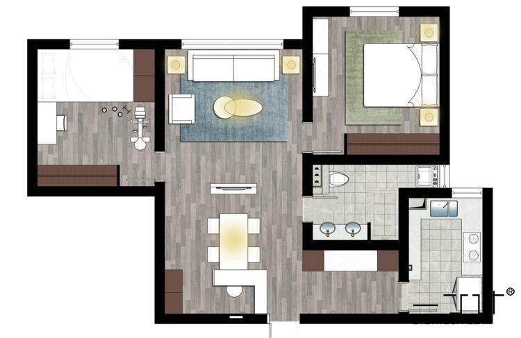 廚房的主色調(diào)也有了黑色木紋面板和白灰色。親們可以多多搜集圖紙做對比參考,選出適合自己的搭配。