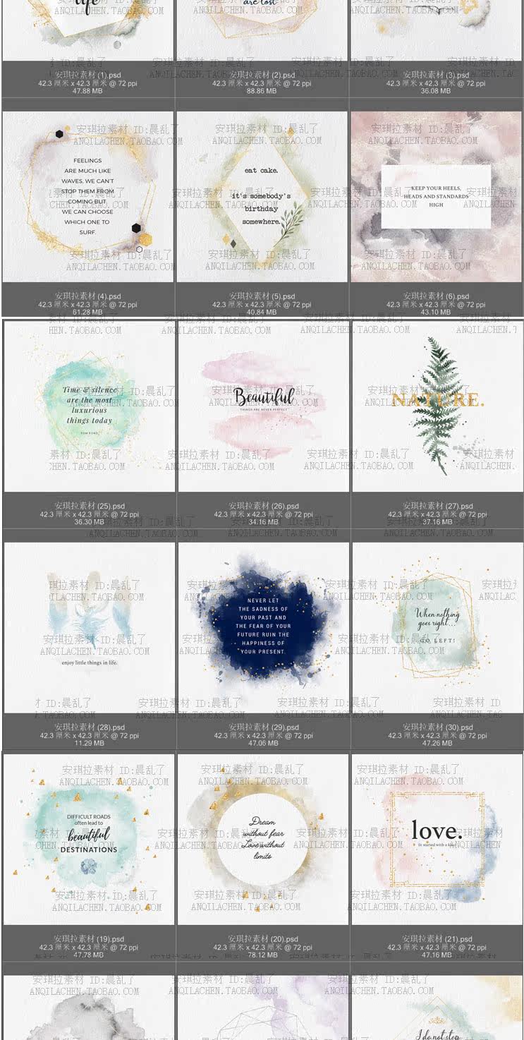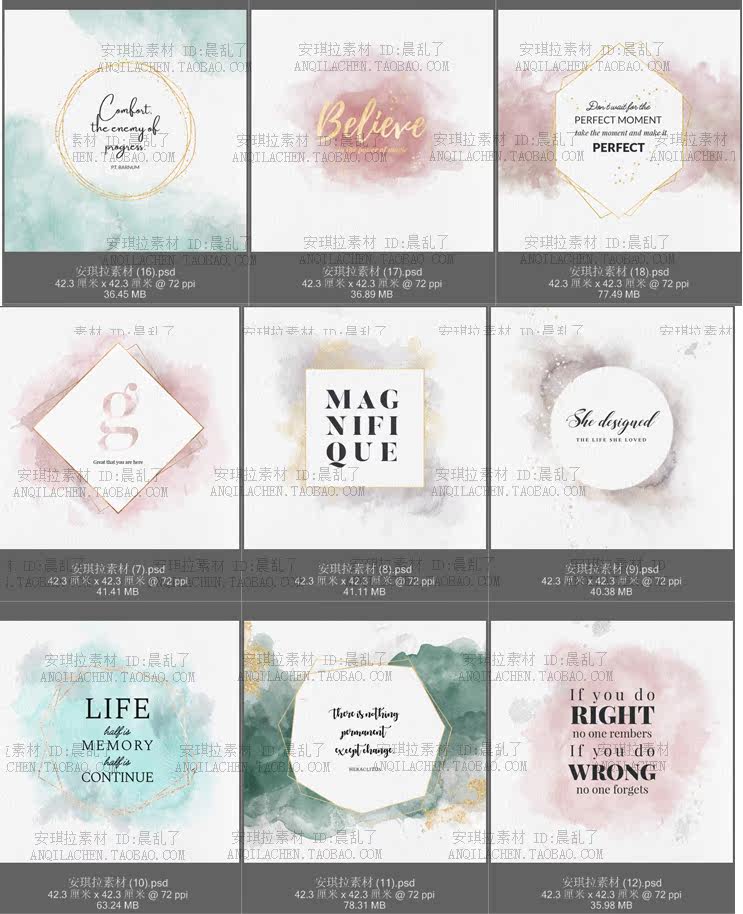 30張唯美水彩紋理輕奢風(fēng)金邊背景婚禮卡片海報psd源文件素材價格行情