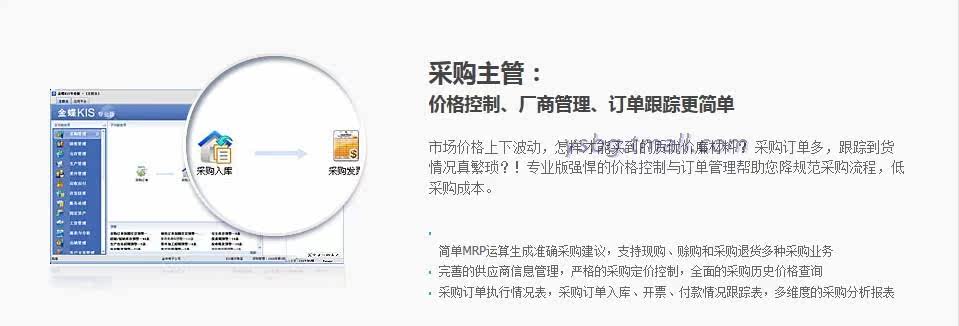金蝶KIS專業(yè)版,充分吸收了金蝶KIS和金蝶K/3兩代產(chǎn)品的優(yōu)良特性,擁有二十萬客戶成功應用經(jīng)驗,繼承金蝶在企業(yè)管理軟件領域內(nèi)近十年的研發(fā)經(jīng)驗,具有高度的成熟度和可靠性。