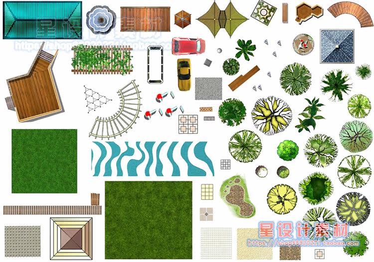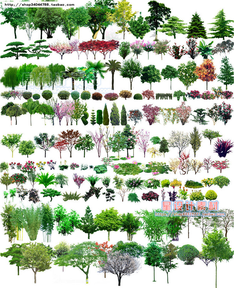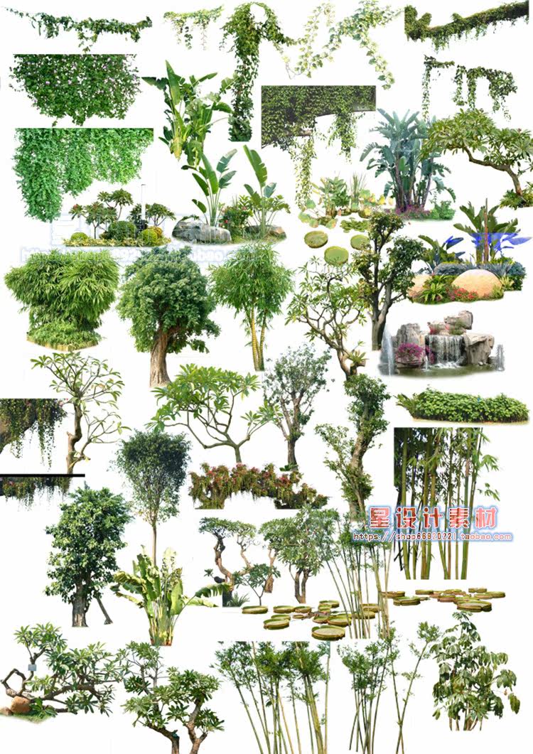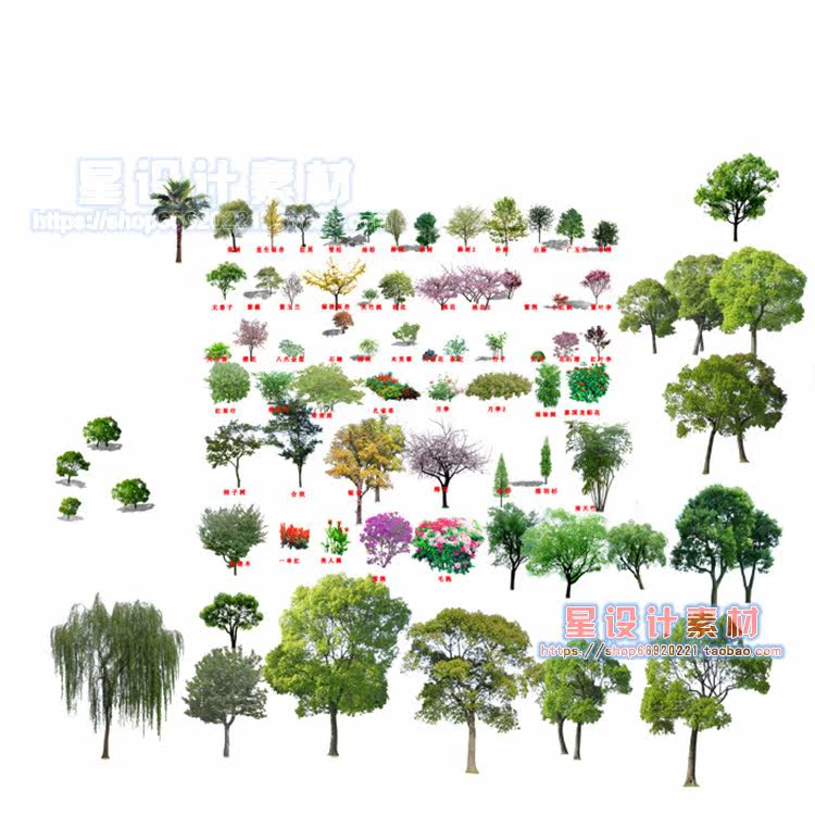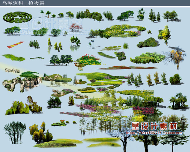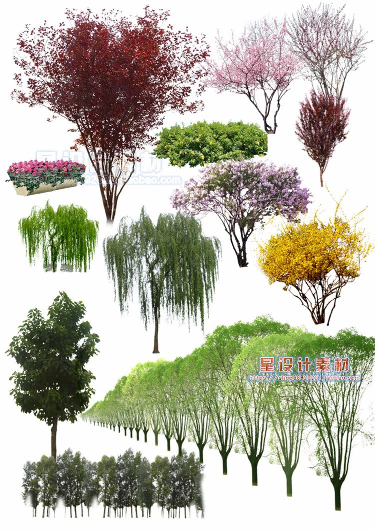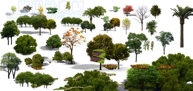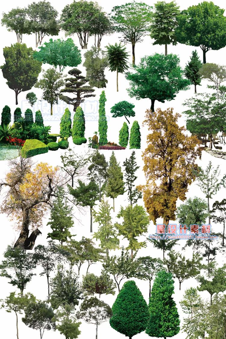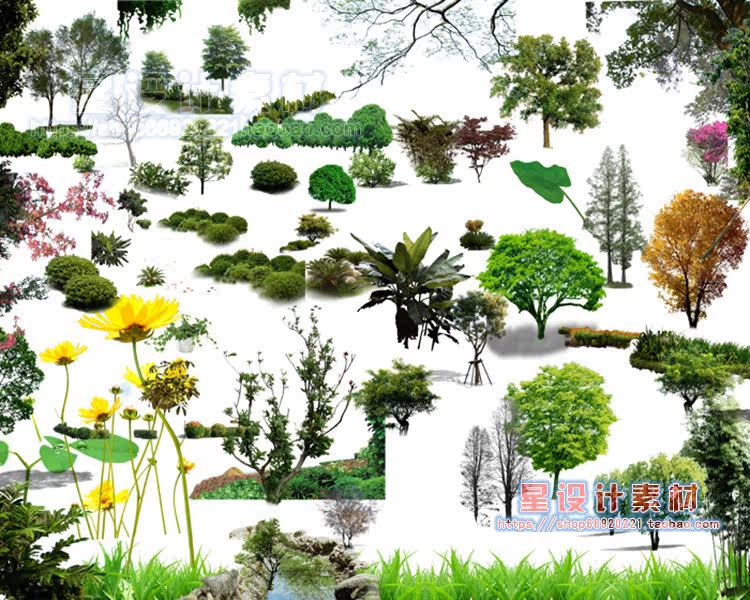 園林景觀彩平圖PSD素材植物手繪輔裝PS后期立面樹木室外效果圖推廣熱賣行情
