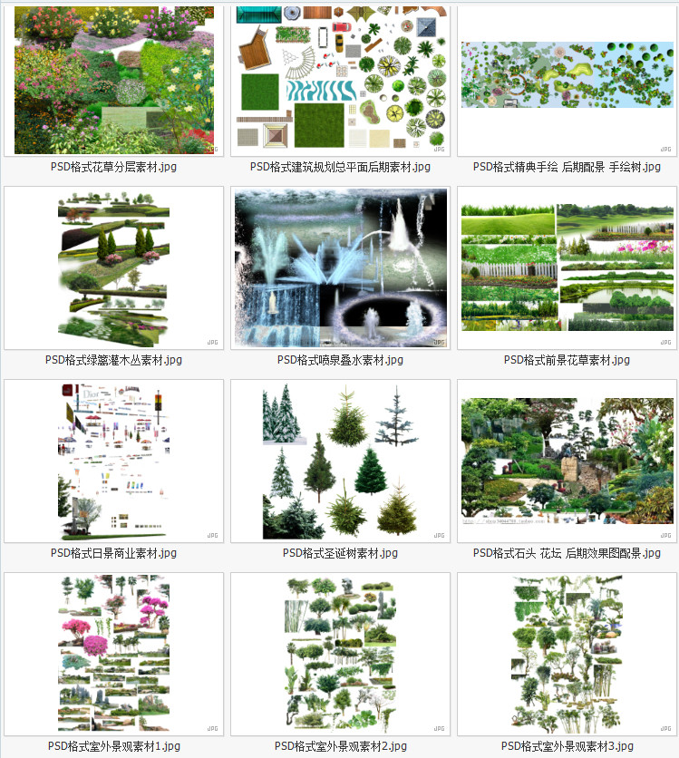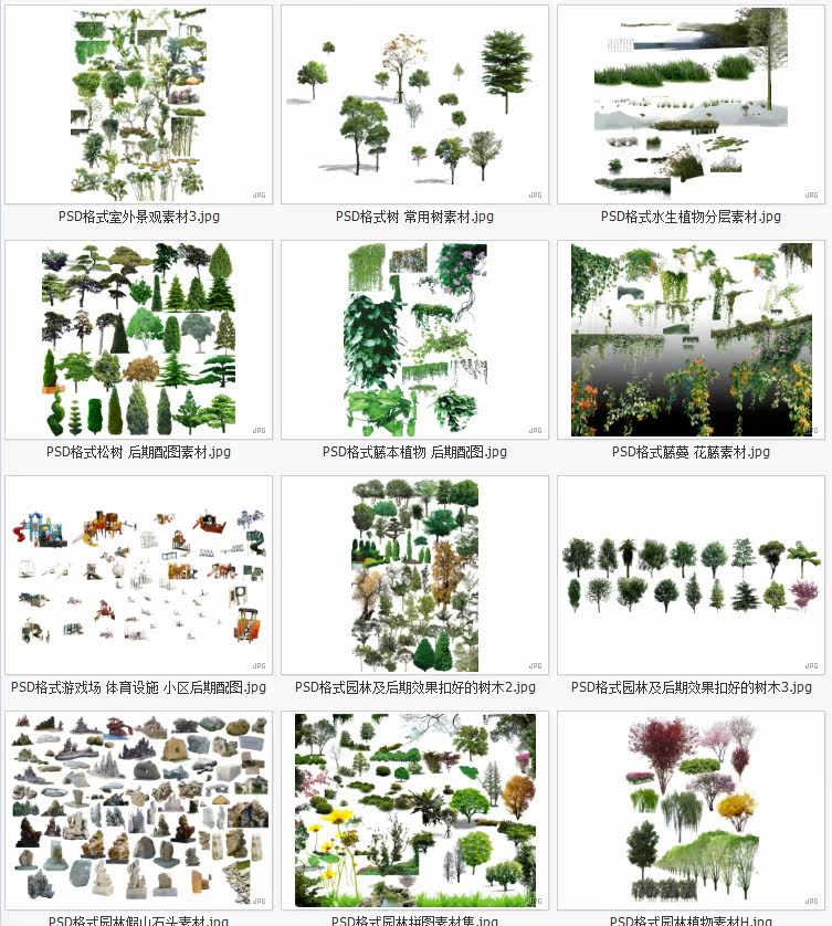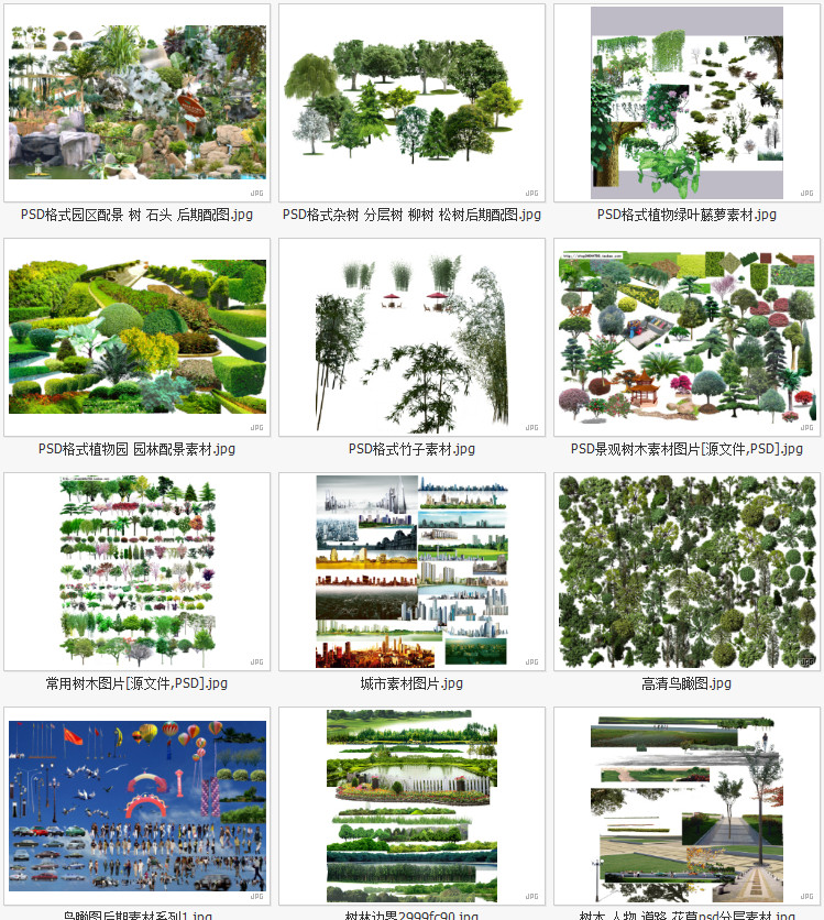 園林景觀彩平圖PSD素材植物手繪輔裝PS后期立面樹木室外效果圖價(jià)格行情