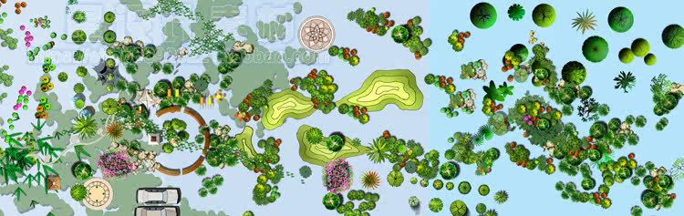 園林景觀彩平圖PSD素材植物手繪輔裝PS后期立面樹木室外效果圖