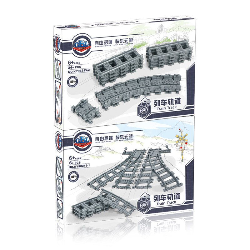 高博樂(lè)電動(dòng)火車列車積木軌道配件98215直軌彎軌岔道軟軌兼容樂(lè)高