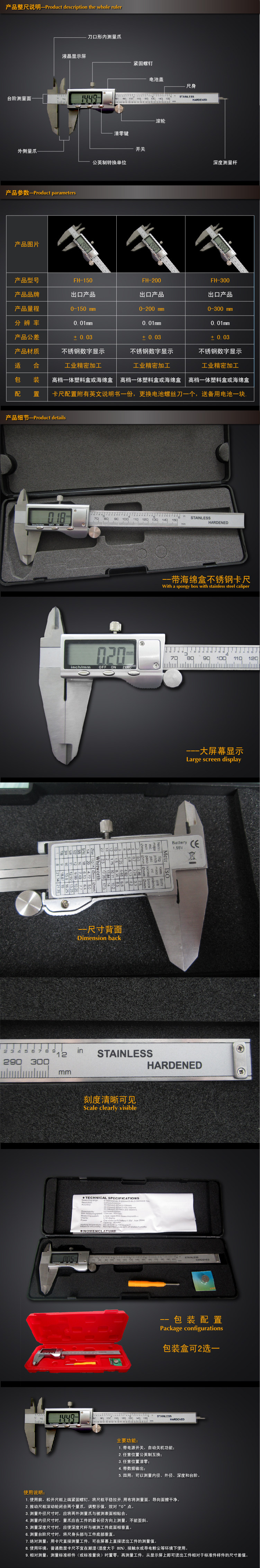 正品工業(yè)級不銹鋼數(shù)顯游標(biāo)卡尺數(shù)顯卡尺電子卡尺0150/200/300mm