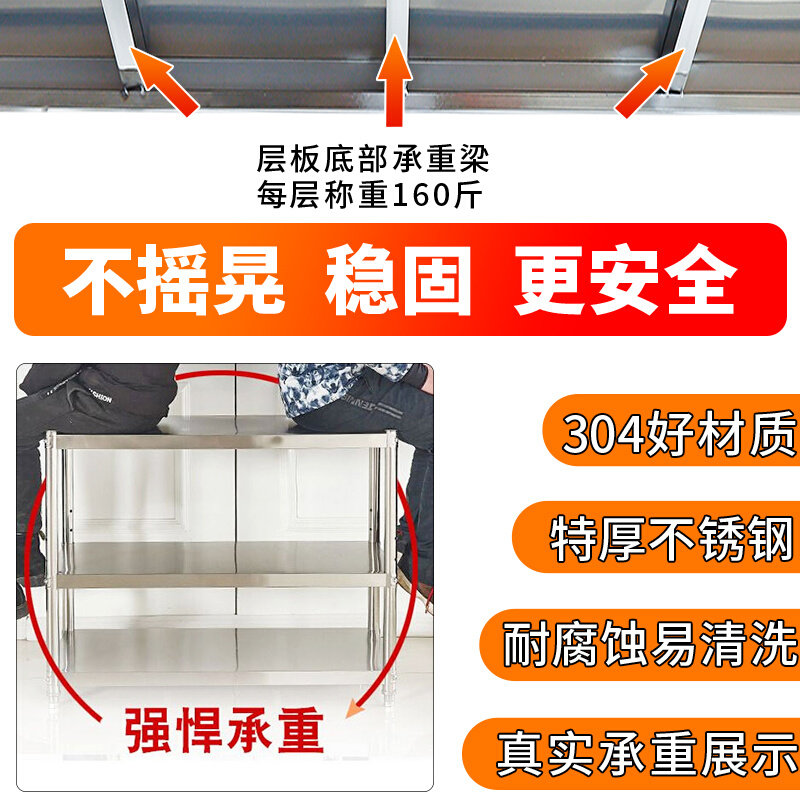 304不銹鋼廚房置物架落地多3層微波爐收納架特厚多功能儲物貨架子價格行情