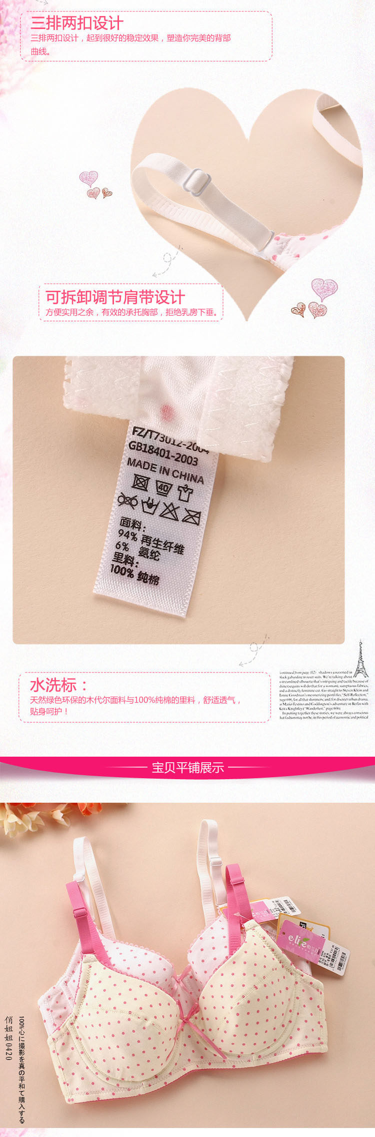 - 文胸風格:甜美