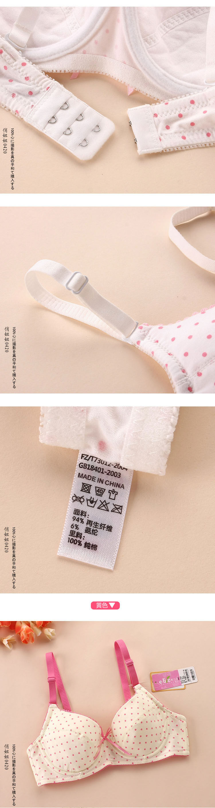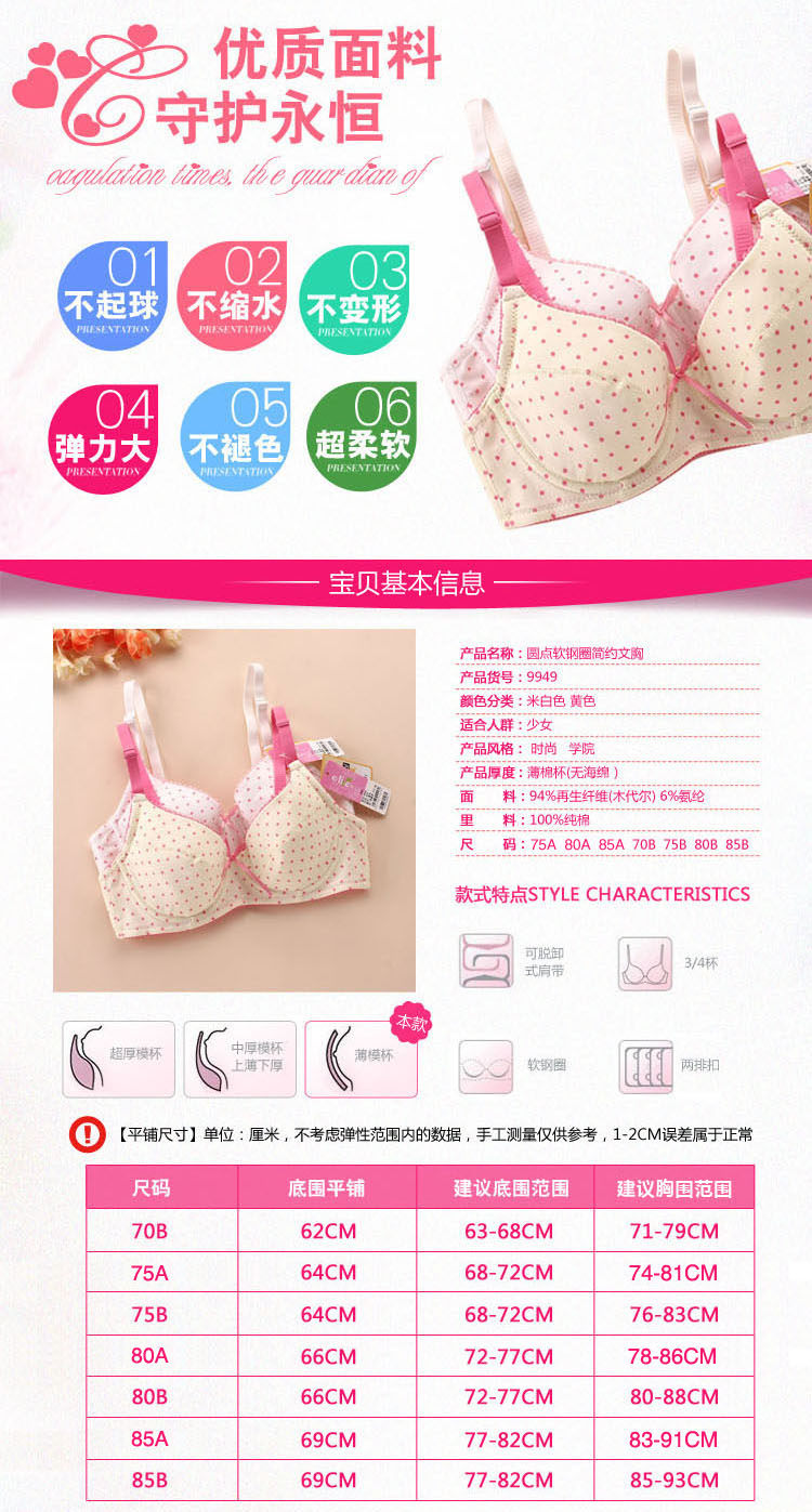 - 罩杯面料:棉