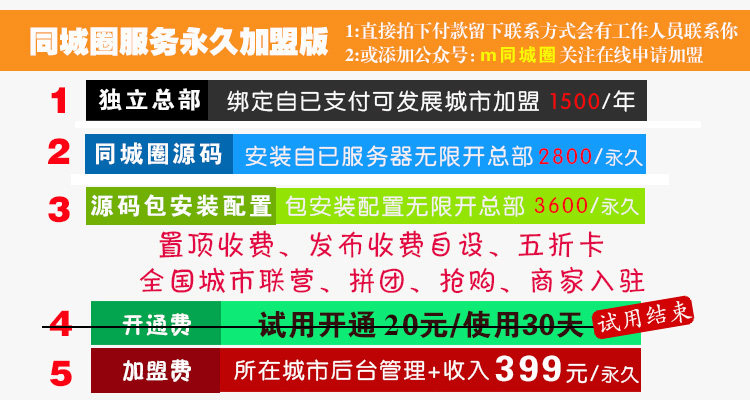 微同城圈系統(tǒng)公眾號(hào)同城本地生活服務(wù)門戶掌圈城市圈服務(wù)城市加盟 城市自媒體加盟很長(zhǎng)時(shí)間使用.一:不需綁定公眾號(hào). 二:針對(duì)本地化自媒體. 三:獨(dú)立的后臺(tái)管理. 四:不需服務(wù)器不需維護(hù). 五:置頂收費(fèi)、發(fā)布收費(fèi)自設(shè)