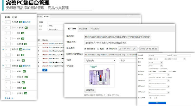 (秒殺、滿多少減多少、積分商城、店鋪裝修、分權(quán)管理、O2O核銷等...)