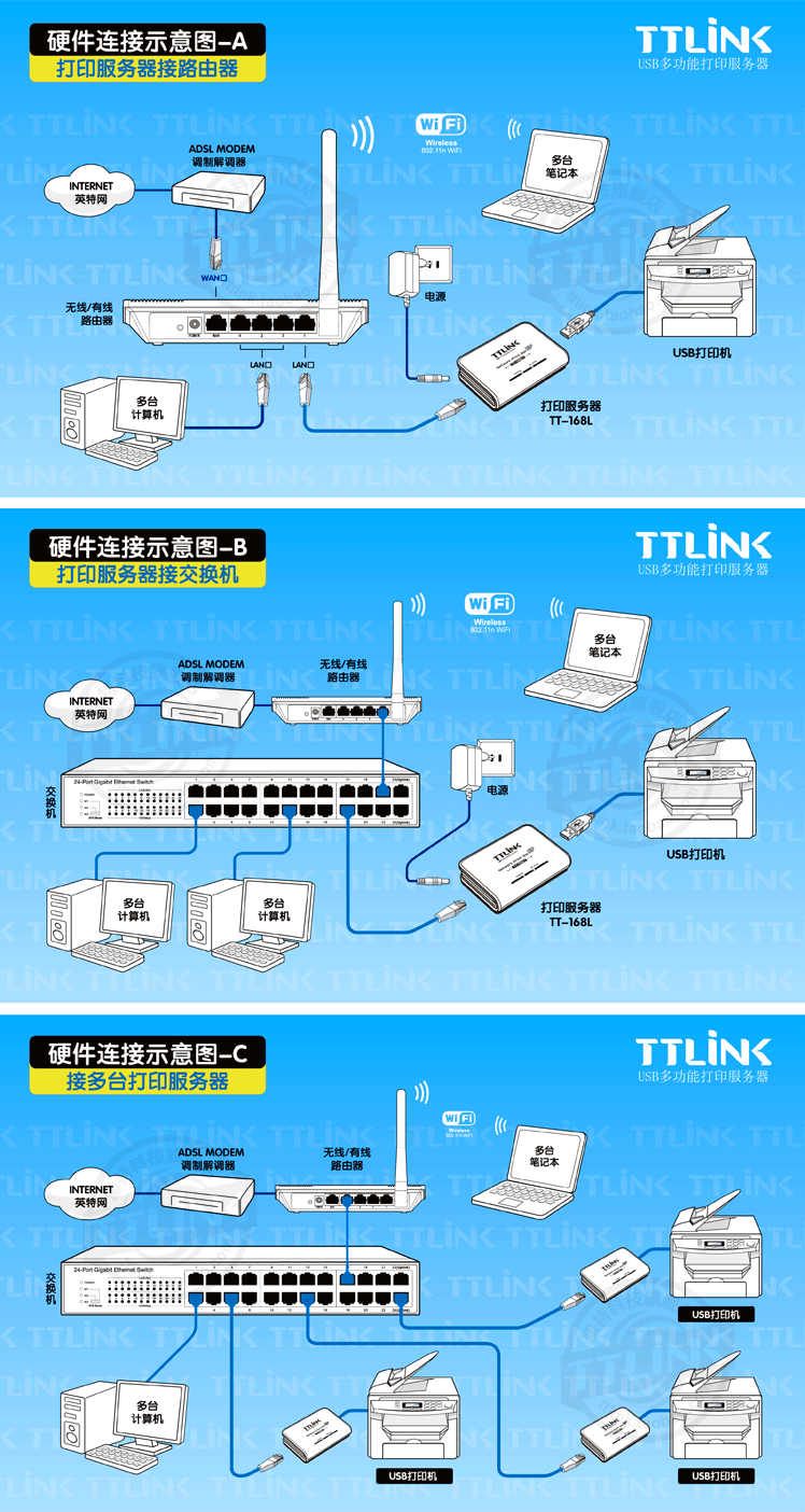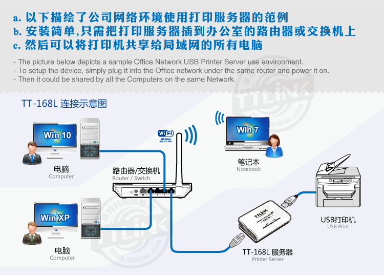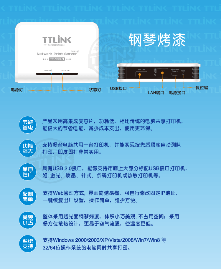 TTLINK TT168L1 USB網絡打印機服務器共享器HP佳能EPSON夏普兄弟推廣熱賣行情