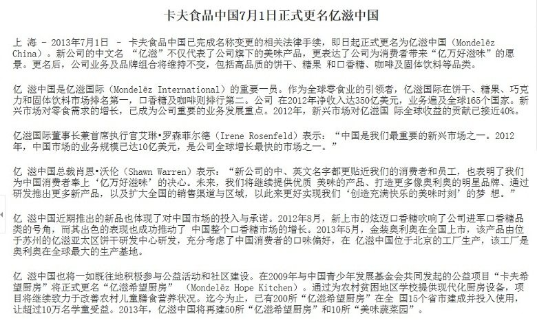 卡夫食品(北京)有限公司(B)