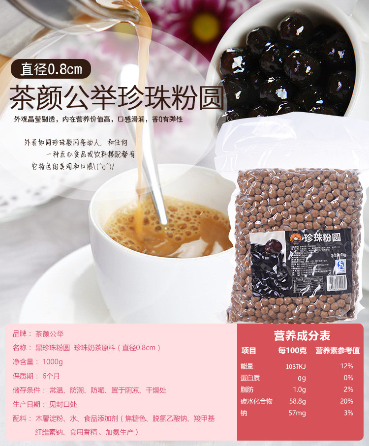 茶顏公舉 黑珍珠粉圓1kg木薯粉珍珠奶茶珍珠豆無(wú)明膠奶茶原料推廣熱賣行情