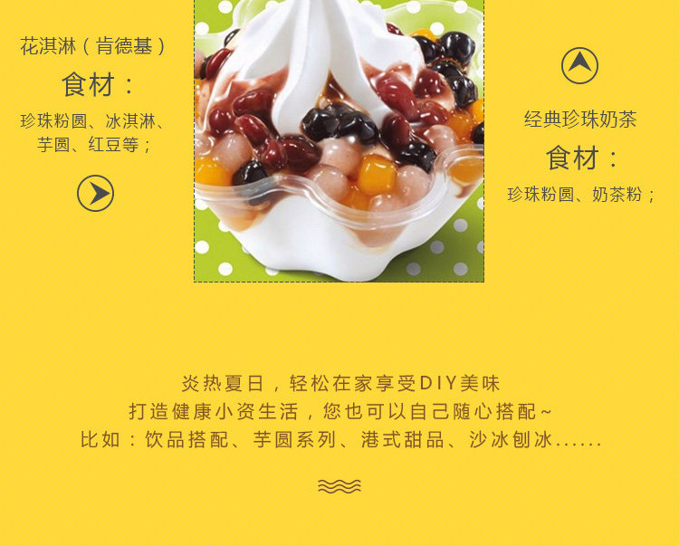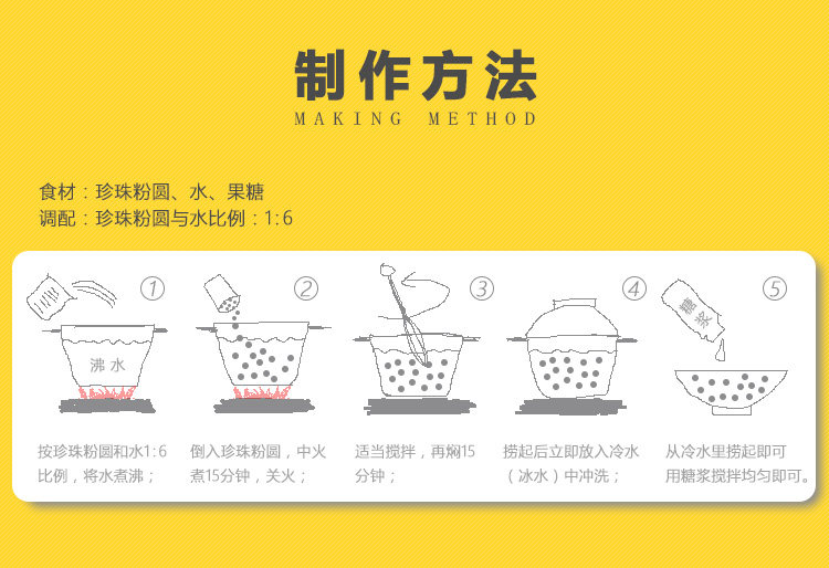 規(guī)格:1kg*16包/箱 包郵 使用方法: 水:木薯粉圓=6:1,水煮開(kāi),放入木薯粉圓,調(diào)小火煮15分鐘,關(guān)火燜15分鐘左右,用冷水清洗即可 保溫存放效果更佳。
