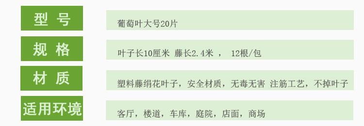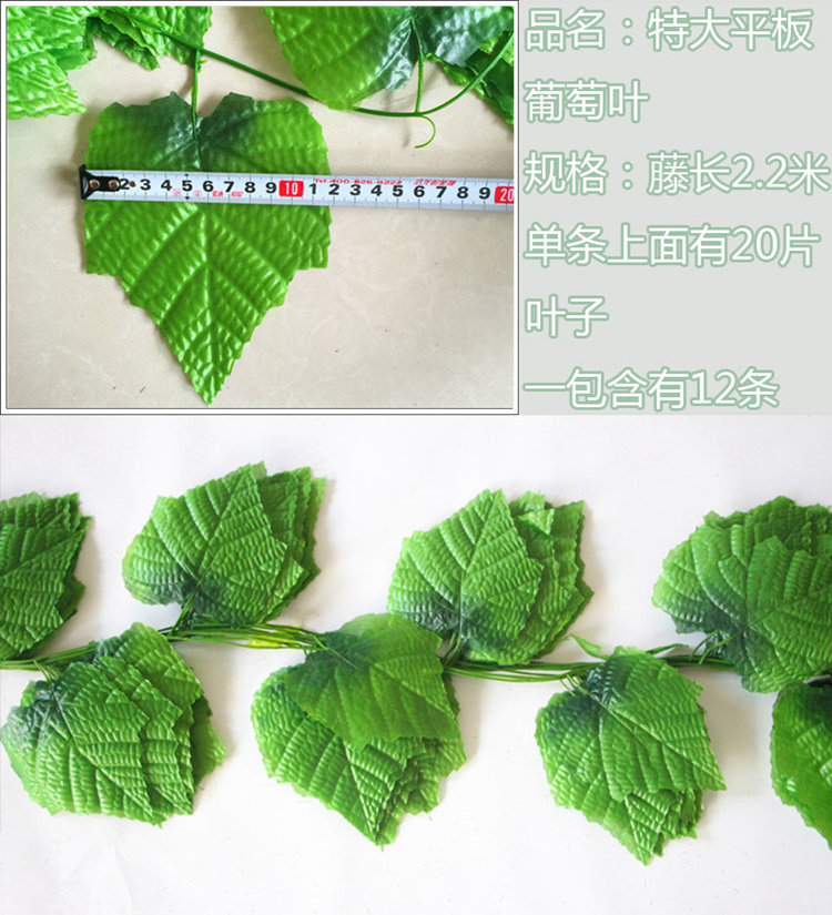 花藤綠葉仿真大葡萄葉子假樹葉藤條葉子塑料藤蔓吊頂裝飾假花批發(fā)推廣熱賣行情