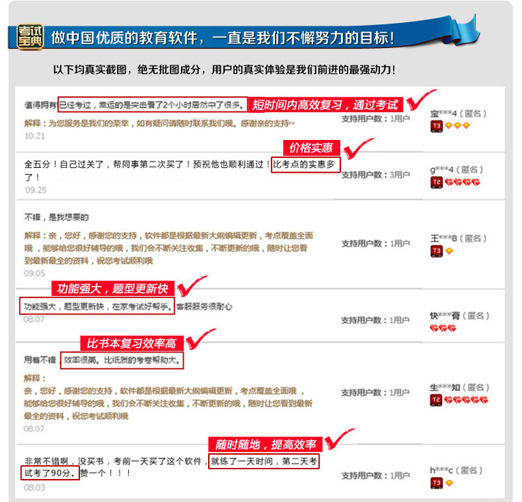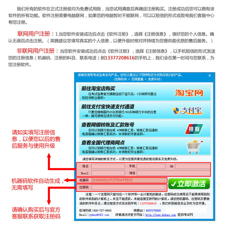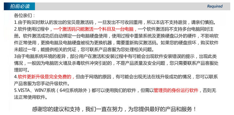 非常近頻繁有考生反饋購買了低價的盜版軟件,注冊碼注冊不了,有的注冊后錯誤多,不能及時更新,影響考試,浪費了寶貴的時間,同時售后得不到保證,請大家務必選擇正規(guī)商家購買。