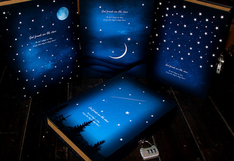 星空密碼本復古帶鎖日記本 盒裝密碼筆記本子 密碼鎖扣記事本包郵推廣熱賣行情