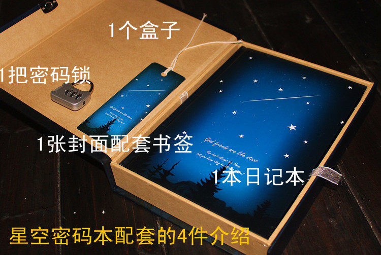 星空密碼本復古帶鎖日記本 盒裝密碼筆記本子 密碼鎖扣記事本包郵價格行情