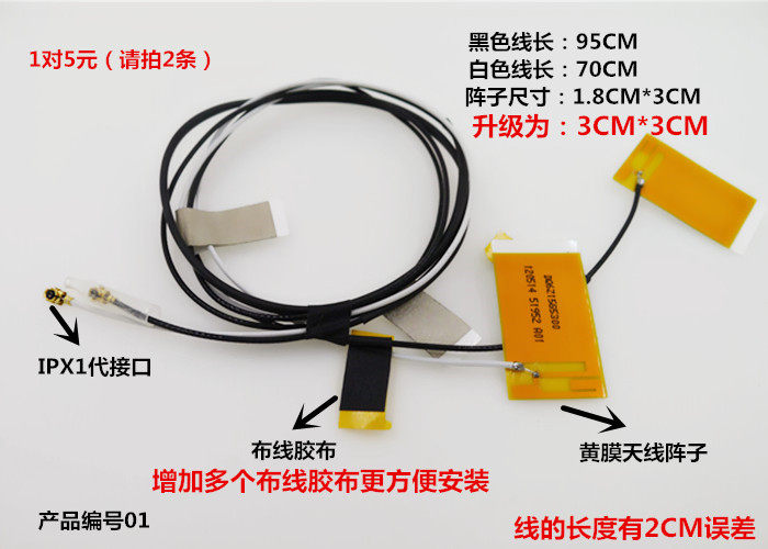 原裝天線,絕緣超薄設(shè)計,適合于各類筆記本MINI PCI無線網(wǎng)卡接口.特別是拆機有難度且非常適合機身空間較小的機型.(全新) 此天線適合所有筆記本安裝,質(zhì)量很好,長短合適,信號強。