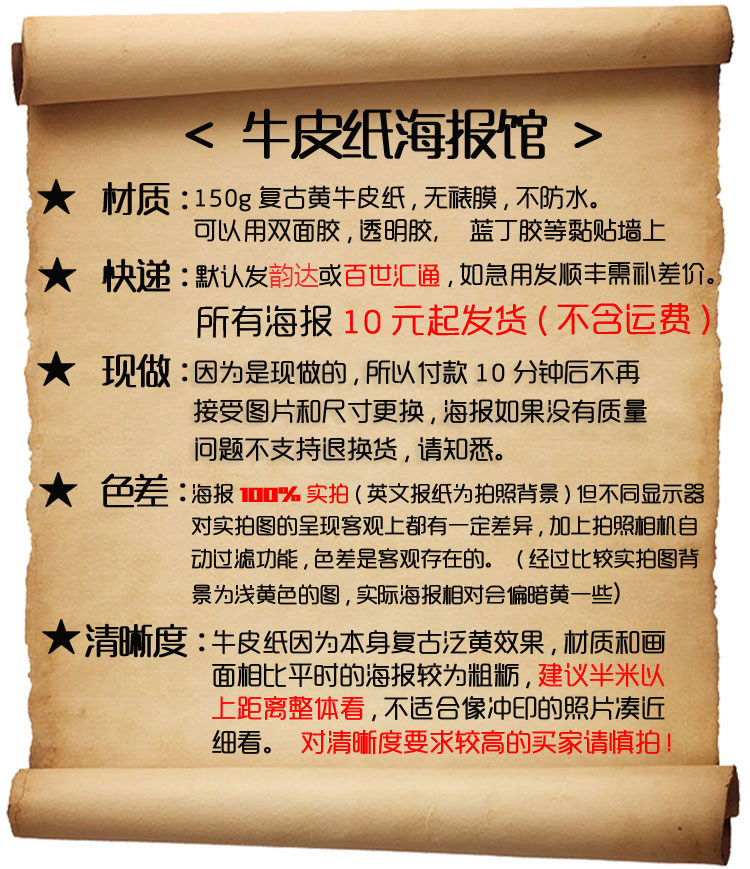海報是現(xiàn)做的,需要一個制作過程,付款后24-48小時左右發(fā)出,請耐心等待哦。