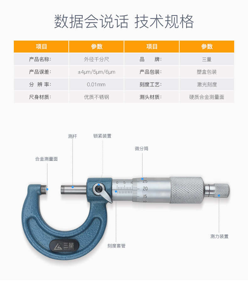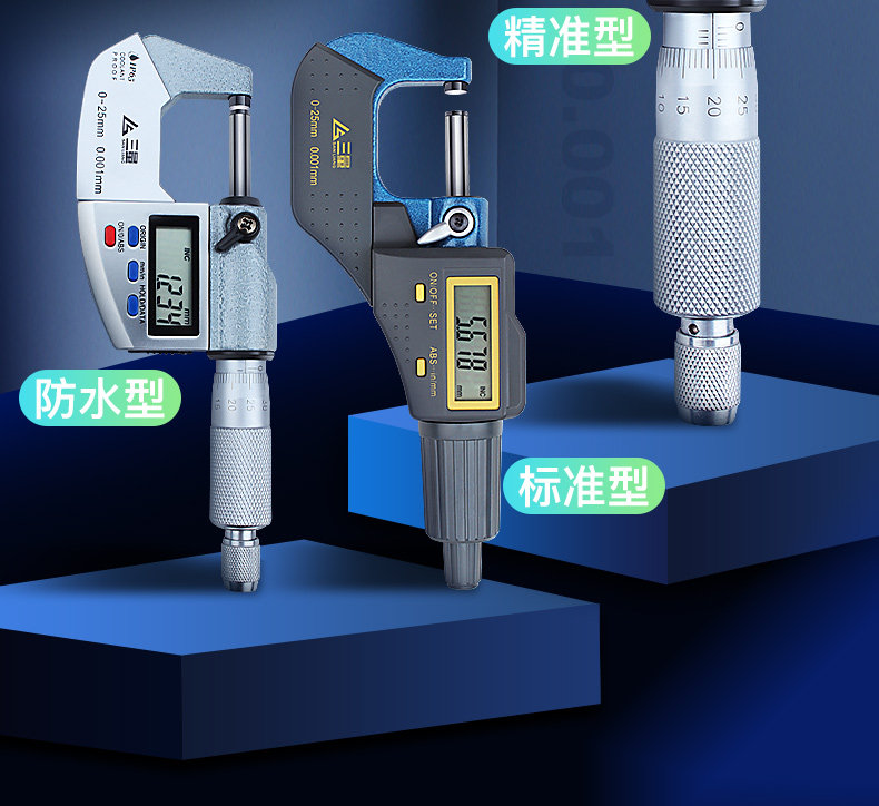 三量外徑千分尺02550mm高精度0.001測(cè)厚儀螺旋測(cè)微器儀數(shù)顯厘卡.