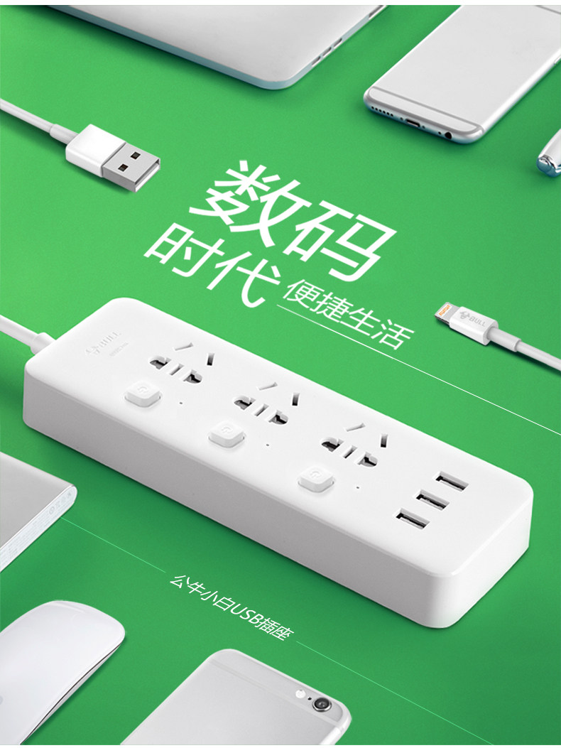 公牛插座USB插排插線板接線拖線板插板帶線家用多功能電源轉(zhuǎn)換器