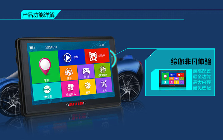 - 功能:固定測速FM發(fā)射3D地圖語音導(dǎo)航手寫輸入