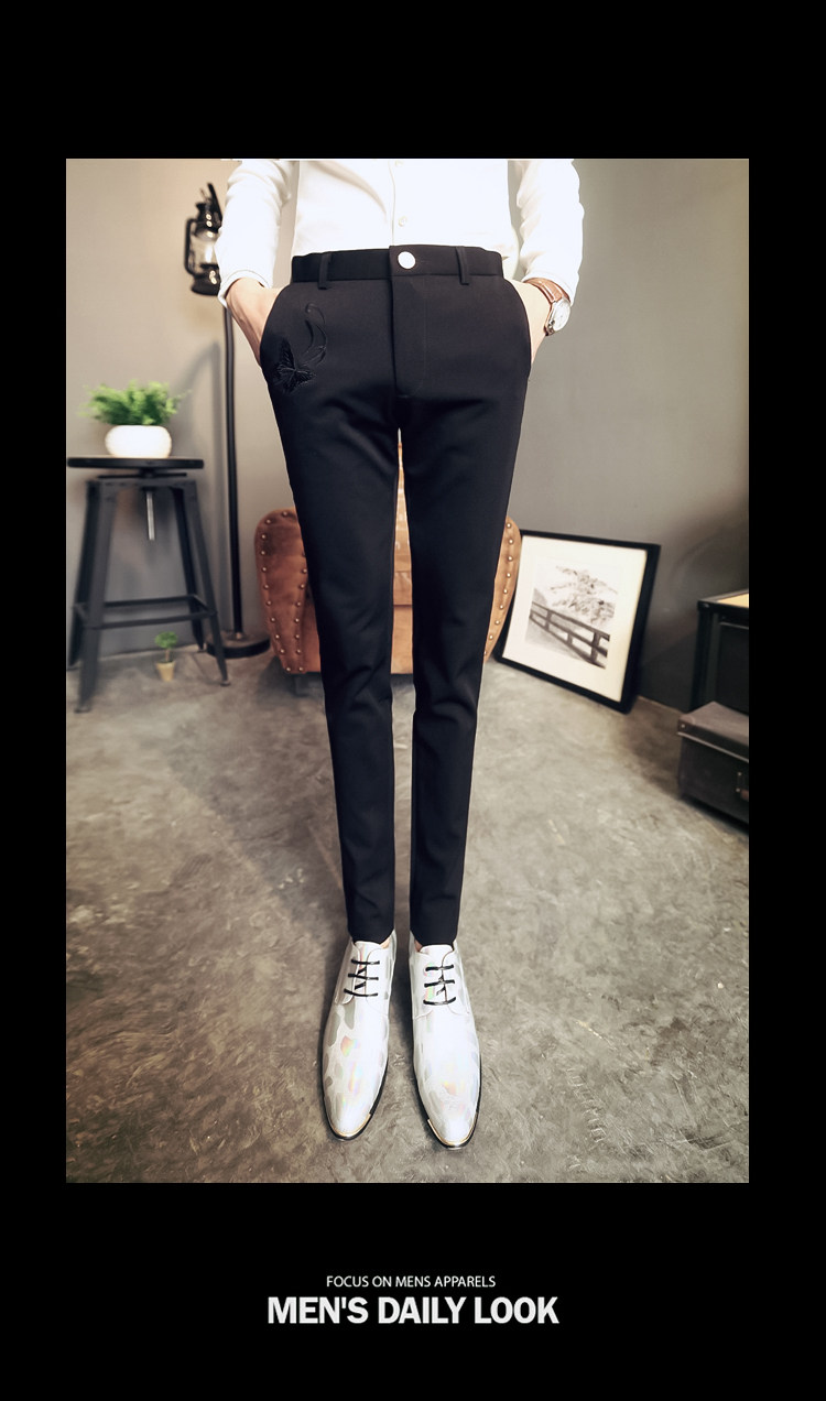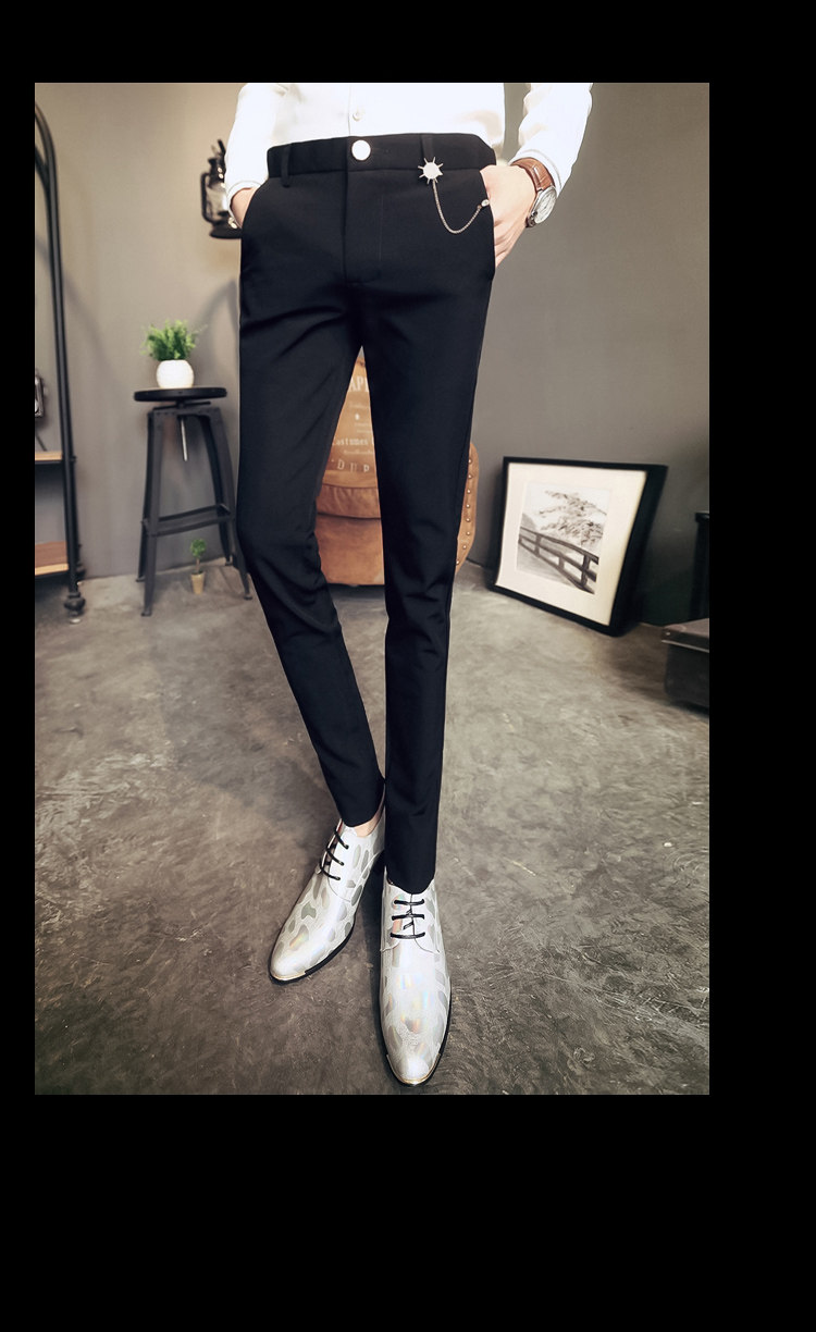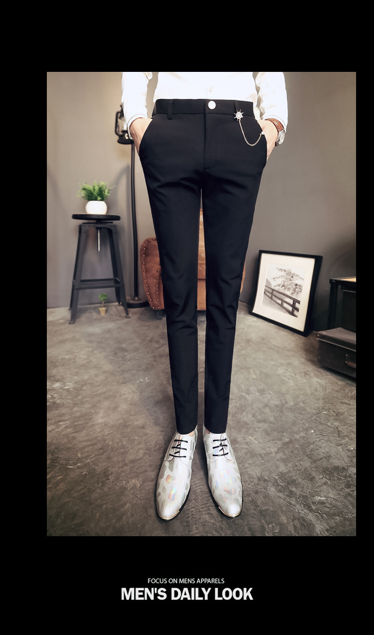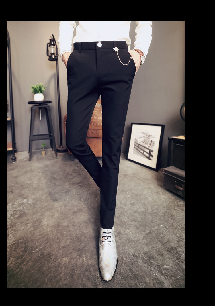 夏季顯瘦青年小腳西褲潮發(fā)型師韓版修身型男緊身力休閑長褲薄款推廣熱賣行情