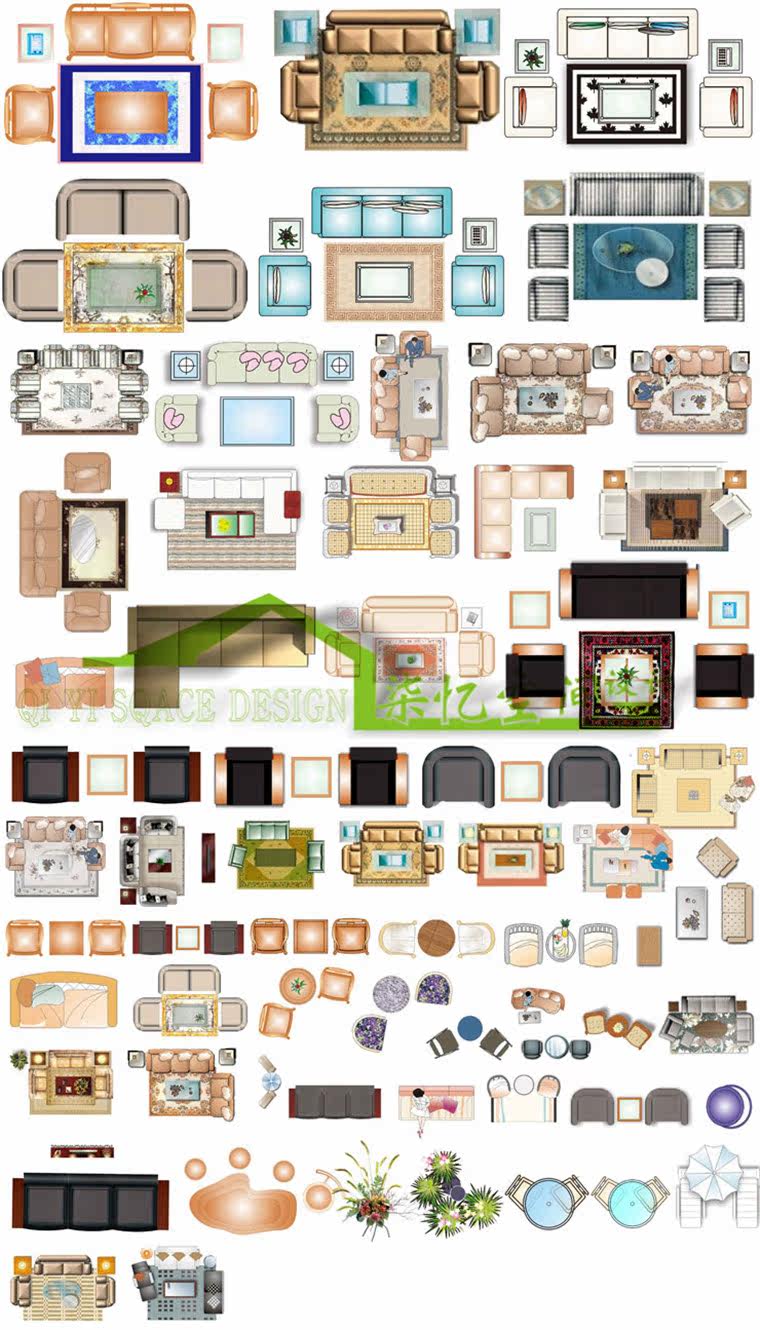 室內(nèi)設(shè)計彩色總平面圖制作素材 家裝工裝彩色平面圖塊 海量12G!!!