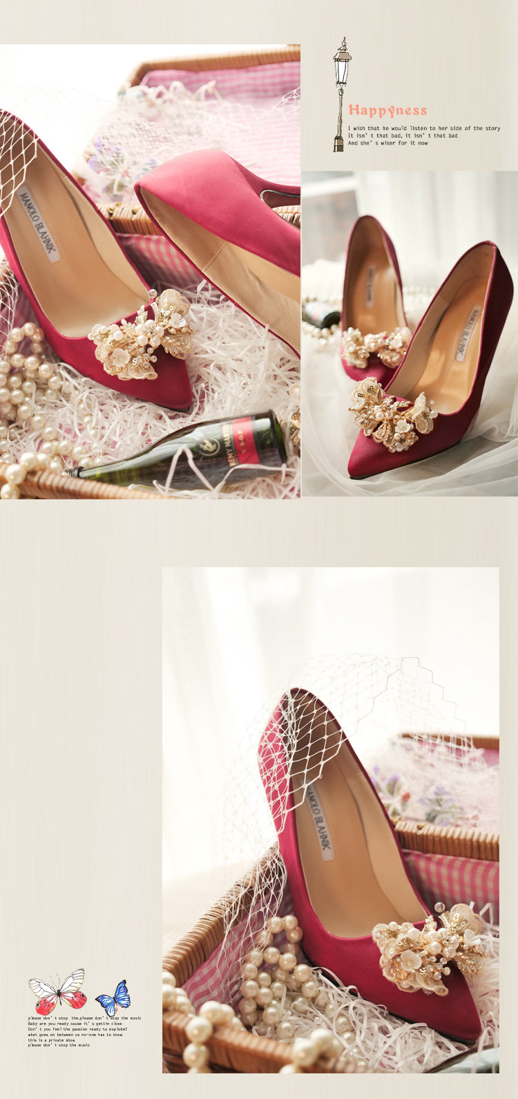 - 流行元素:淺口絲帶花朵亮片 蝴蝶結水鉆串珠