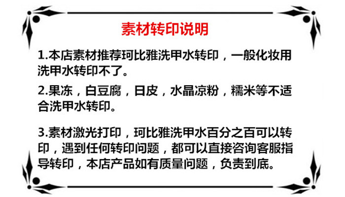 本店激光打印的素材建議使用珂比雅洗甲水轉(zhuǎn)印。