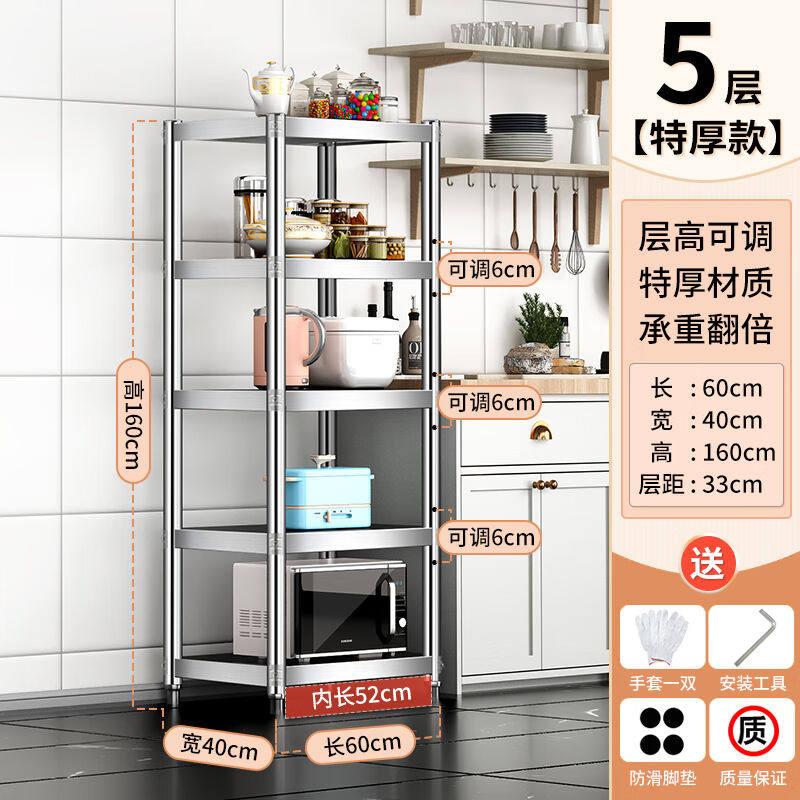 2023擱物架貨物架家用不銹鋼廚房置物架落地多層微波爐烤箱多功能價(jià)格行情