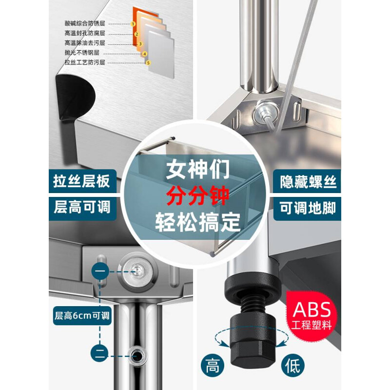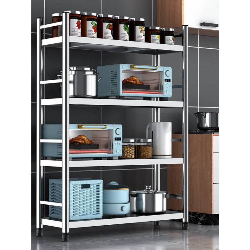 2023不銹鋼廚房置物架落地多層微波爐烤箱多功能儲(chǔ)物櫥柜貨架收納