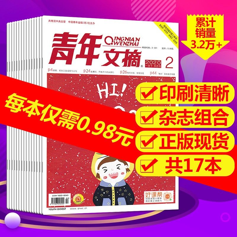 【可選】共7本青年文摘雜志2023年1-7期/2022年1-24期打包課外閱讀故事會意林作文素材讀者書籍期刊2021年非全年訂閱合訂本價格行情