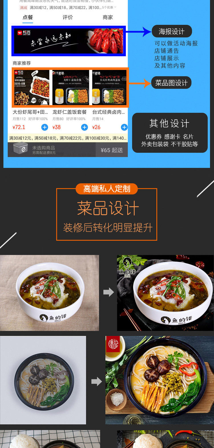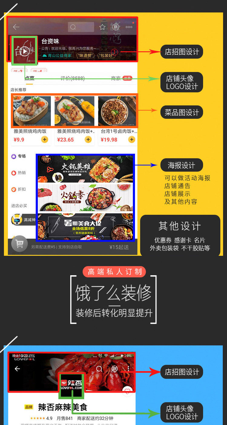美團(tuán)外賣(mài)平臺(tái)店鋪裝修logo頭像海報(bào)店招視頻設(shè)計(jì)制作菜品圖片美化價(jià)格行情